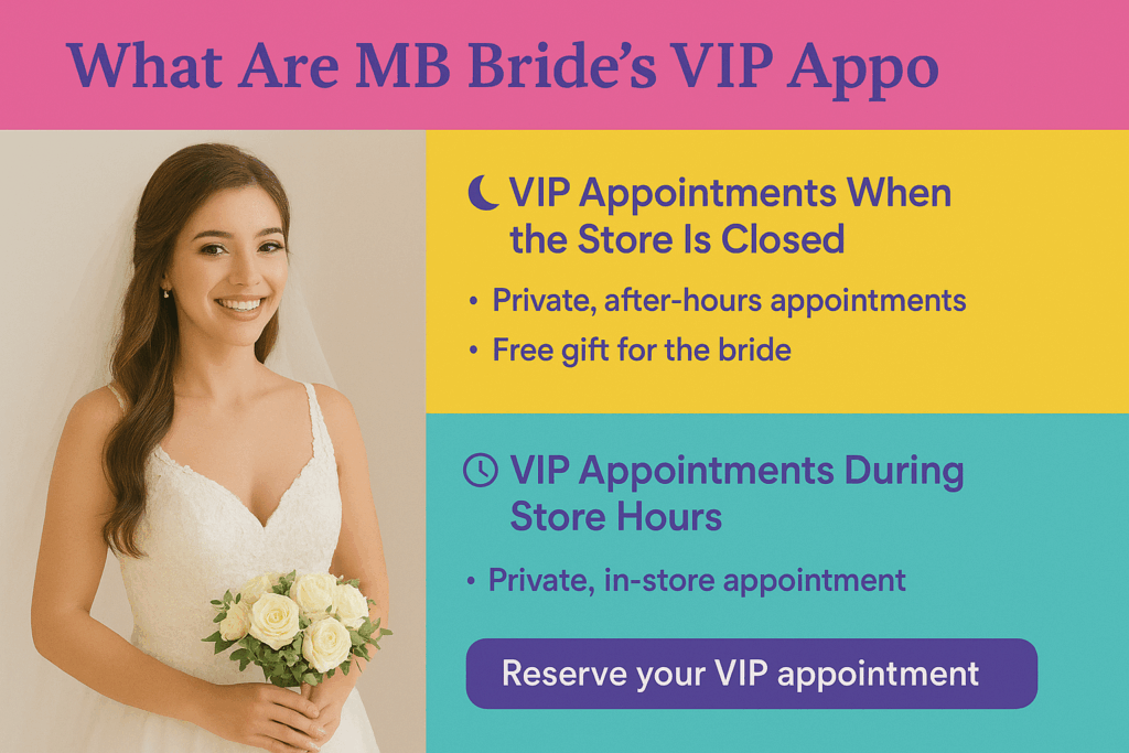Shopping for a wedding dress is one of the most exciting parts of planning your big day ๐ฐโจ. But did you know MB Bride offers something extra special for brides and their parties? Itโs called a VIP Appointmentโand itโs all about making your experience unforgettable.