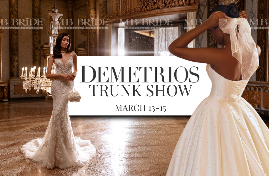 Prepare to be captivated by the epitome of bridal luxury. From March 13–15, MB Bride is proud to host the Demetrios Trunk Show, featuring the latest masterpieces from a designer renowned for sophisticated glamour and timeless romance.