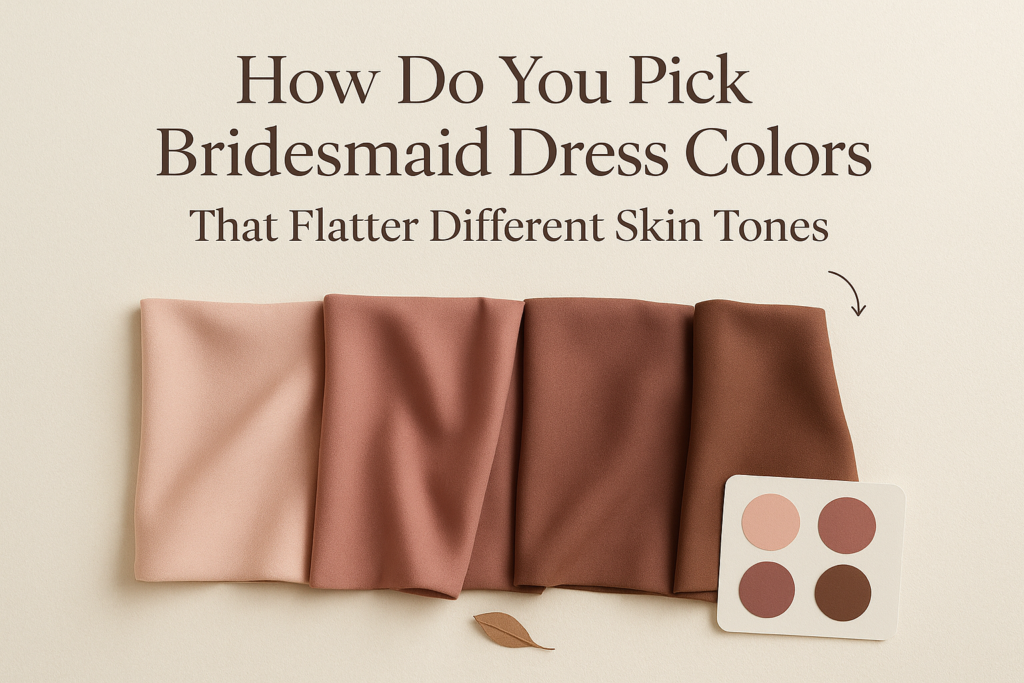 A good rule is to decide three things together: light versus deep, cool versus warm, and matte versus shine. That last part matters more than many people expect. Satin can make a color look brighter and more dramatic, while chiffon or softer matte fabrics can make the same family feel more relaxed and universally wearable. If the whole bridal party is spread across different locations, keeping that color direction clear from the beginning also makes ordering smoother, especially for anyone who will not be shopping in person with the group. Our guide onĀ “Ordering bridesmaid dresses when you do not live nearby”Ā is useful for that part of the process too.